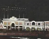 This is a closeup of a section of a postcard showing Wonderland at night. The building on the left is the theater, but the one to the right is the Penny Arcade at night.