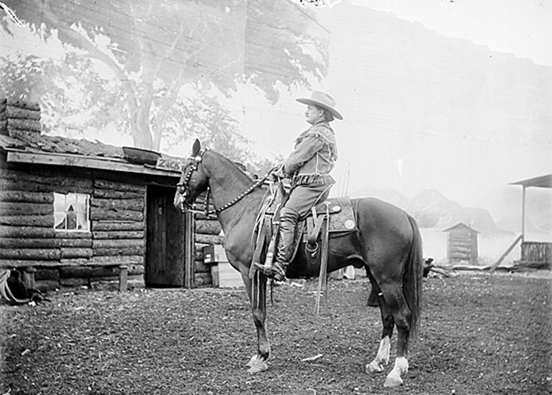 The above photo of Pawnee Bill shows him on the “set” at Wonderland. You can see the painted wooden backdrop and the real log cabin they constructed (they also put up teepees and other structures). The photos of the Wild West show were taken by Erwin E. Smith, a western photographer who wanted to document the vanishing life of the cowboy. He was studying at the Museum School of the Museum of Fine Arts in Boston in 1908, and realized that Pawnee Bill’s show at Wonderland gave him an excellent opportunity to practice before he returned to the west. His glass negatives provide images of much higher quality than the newspaper photos and postcard images.