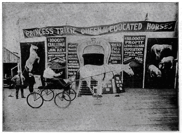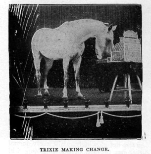 Princess Trixie was The Equine Paradox, an educated horse who could count, add, multiply, make change in her custom-built cash register, and duplicate the colors of the dress of a woman chosen from the audience, using cloth swatches kept in a basket.