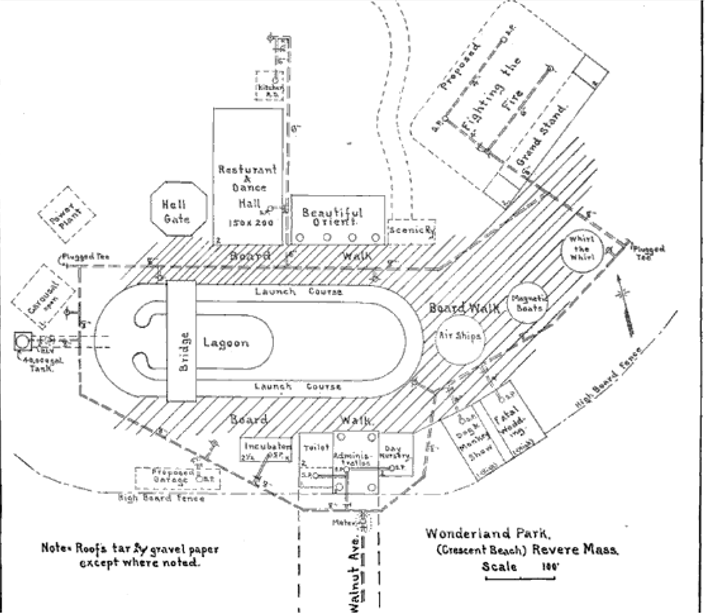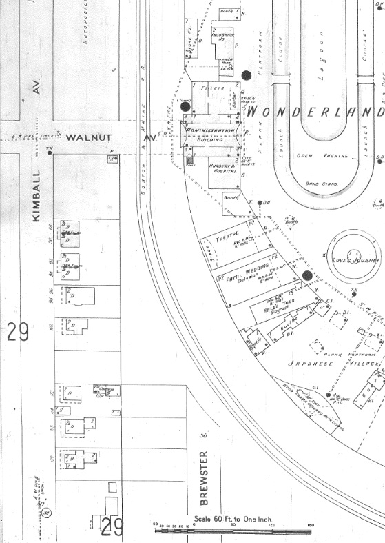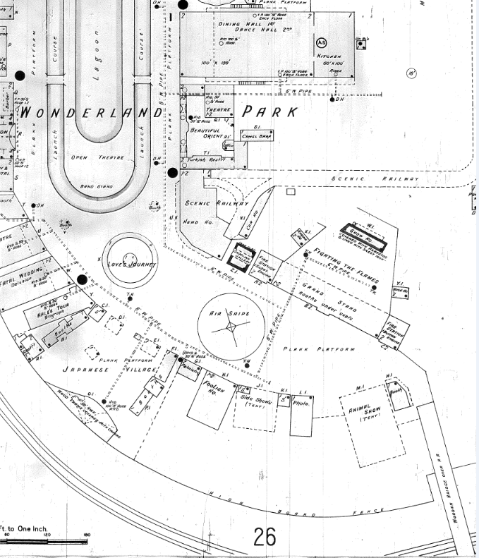 One of the few maps produced of Wonderland Park appeared in The Standard, a fire-insurance journal in its March 17, 1906 issue (North is at the top):